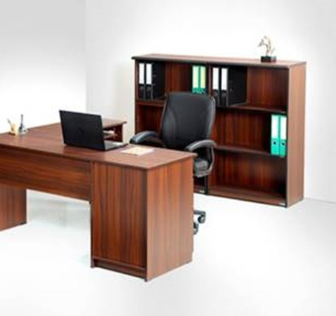 Executive desks, workstations, ergonomic chairs, and storage solutions like cabinets and shelving units.